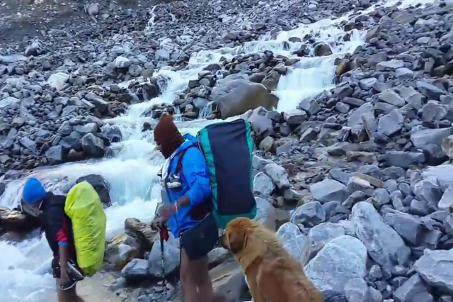 We start off slowly and soon find ourself crossing the boulders of Sheela Samudra. We witness numeric tarns of the once mighty glacier. The route then follows the Nandakini river climbing gradually up, though some part of the trail is unmarked and very slipery with almost no trail. We need to be careful in these sections.