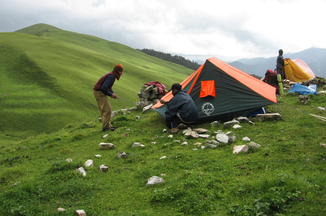 Our campsite is marked by a huge boulder forming a cave. Look back at Junargali from here and you will be thrilled. Rest the day out.